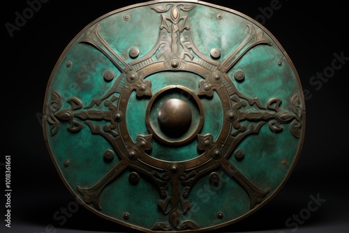 Naklejka premium Antique Decorative Shield with Intricate Details