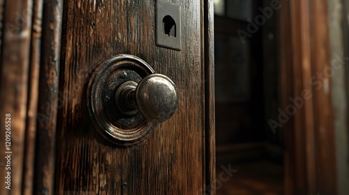 Fototapeta premium Antique Door Knob on Aged Wooden Door