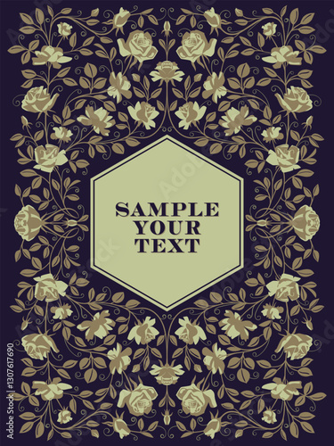 Fototapeta premium Antique frame in Art Nouveau style with a pattern of flowers, buds, leaves...