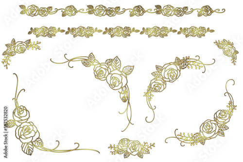 © 虹見, Obraz premium Antique frame of golden roses (with outline)