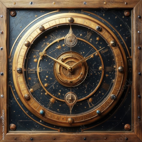 Fototapeta premium Antique Gold Clock Face with Ornate Details.