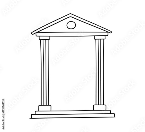 Fototapeta premium Antique Greek museum doodle frame. Hand drawn Roman pillar and Greek column. Ancient museum doodle icon. Hand drawn line border and frame. Vector illustration isolated on white background.