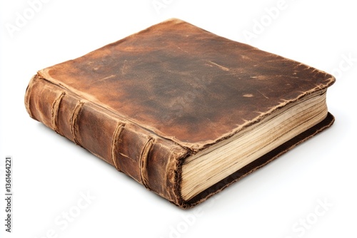 © Anjali, Obraz premium Antique leather-bound book, aged and worn, showcasing its historical charm.
