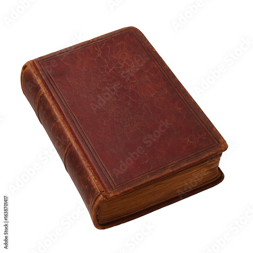 © MDNANNU, Obraz premium Antique Leather Bound Book with Textured Cover and Aged Pages, Evoking History and Knowledge