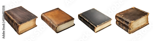 © Jieee Mooo, Obraz premium Antique Leather Bound Books Collection on White Background, Isolated on Transparent Background