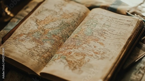 Obraz premium Antique Map Opened on Wooden Table