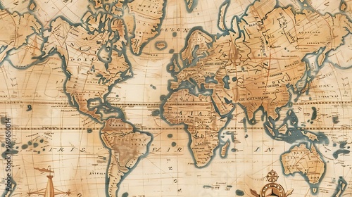 © pixelwallpaper, Obraz premium Antique map wallpaper
