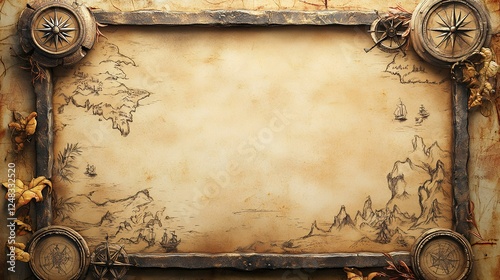 © Laila Creative, Fototapeta premium Antique map with compasses, adventure, exploration, travel background, ideal for design