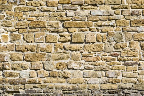 © yelena.b, Fototapeta premium Antique (old) natural stone wall, background, texture or pattern. Stone wall rustic texture. Wall with bricks of italian stones.