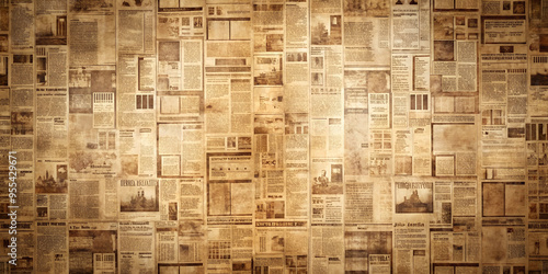 Fototapeta premium Antique Old Newspaper Background: Brown Grunge Paper with Vintage Textures, Faded Print, and Weathered Edges, Ideas for Retro Designs, Historical Themes, and Artistic Projects.