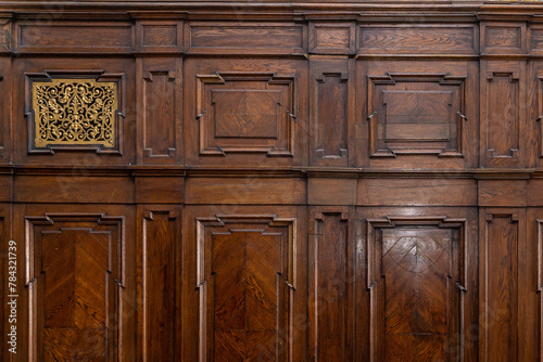 © Iryna, Fototapeta premium Antique old retro wooden decorative panel with vintage golden frames.