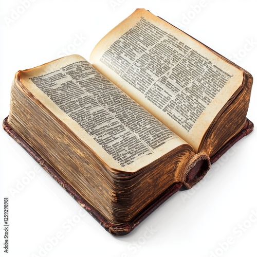© Pornnapha, Fototapeta premium Antique Open Book with Yellowed Pages Showing Text in Old Script for Vintage Literature Enthusiasts
