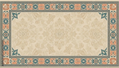 © Lumetriq, Obraz premium Antique Persian Rug Design with Intricate Floral Patterns and Symmetrical Border, High-Resolution Image