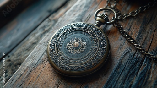 Fototapeta premium Antique Pocket Watch on Rustic Wood: A Glimpse into Time