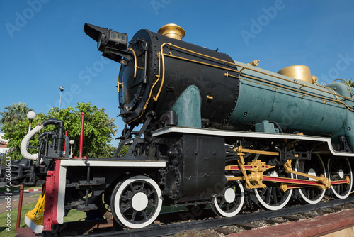 Naklejka premium Antique steam locomotive train in Korat or Nakhon Ratchasima