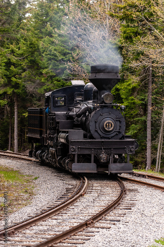 Naklejka premium Antique Steam Shay Locomotive Train in Appalachian Forest - Historic Cass Scenic Railroad - West Virginia