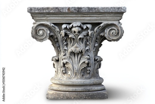 © NUR, Fototapeta premium Antique stone column capital isolated on white background