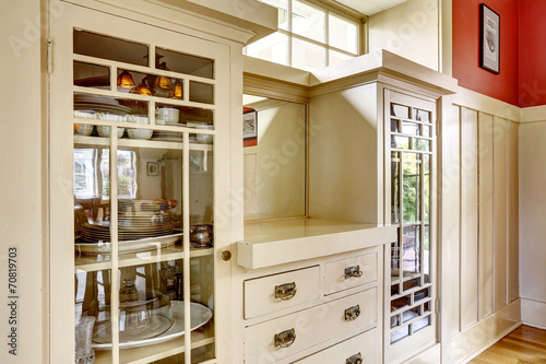 © Iriana Shiyan, Fototapeta premium Antique storage combination with glass doors and drawers