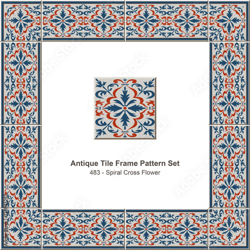 Obraz premium Antique tile frame pattern set_483 Spiral Cross Flower