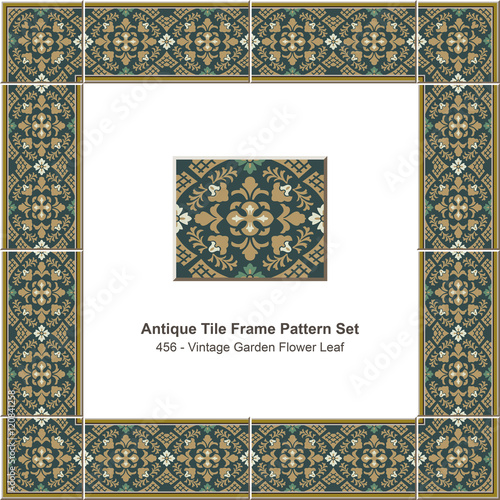 Obraz premium Antique tile frame pattern set_456 Vintage Garden Flower Leaf