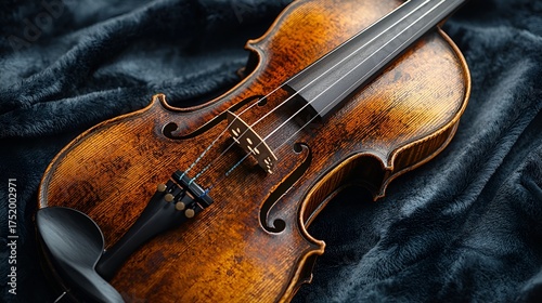 © istriyati, Fototapeta premium Antique Violin on Dark Fabric