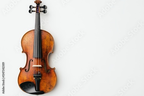 © Sengphachanh25, Fototapeta premium Antique Violin on White Background Top View of a Classic Musical Instrument