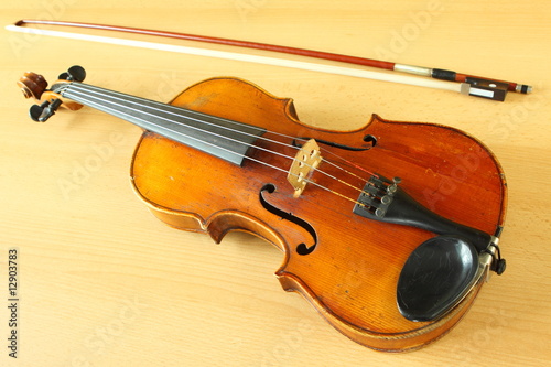 © nikkytok, Fototapeta premium antique violin with a fiddlestick
