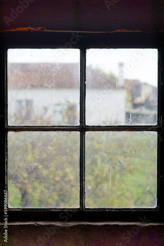 © rudolfoelias, Fototapeta premium antique window with rural landscape in vintage scenery