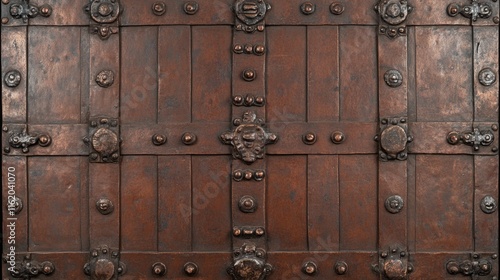 © Big9869, Fototapeta premium Antique Wooden Chest with Ornate Metalwork Detailing