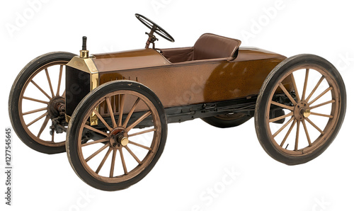 Fototapeta premium Antique wooden child's car, vintage display, museum piece