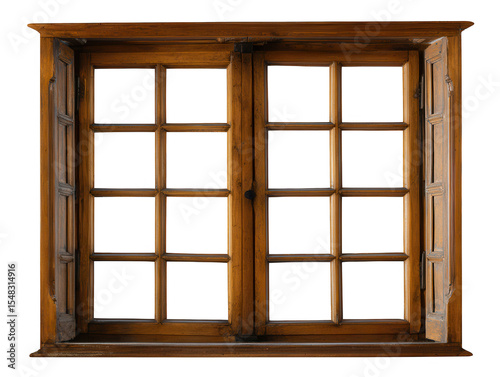 © Nadia, Obraz premium Antique Wooden Double-Hung Window with Multiple Panes Architectural Detail