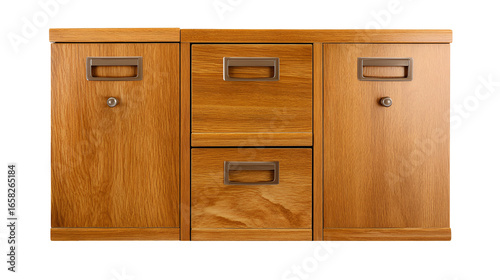 © stockimage by Shamim, Fototapeta premium Antique wooden filing cabinet with brass handles isolated on transparent background