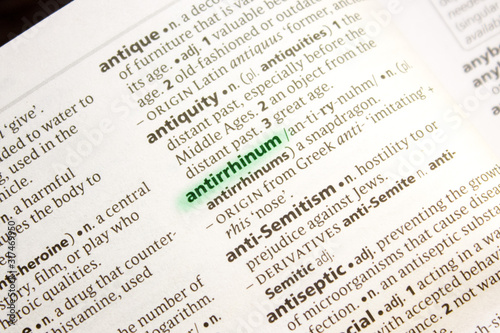 © sharafmaksumov, Fototapeta premium Antirrhinum word or phrase in a dictionary.