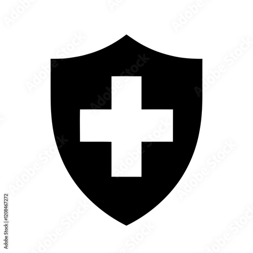 Fototapeta premium Antivirus icon. Minimalist Protection Shield with Medical Cross in Grey and White