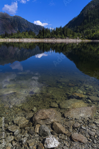 Fototapeta premium Antrona lake: landscape with reflections on water