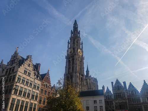 Fototapeta premium Antwerp Cathedral, dedicated in the name of Our Lady. The construction beginning at 1352 and was ended at 1521 but it never been totally completed.