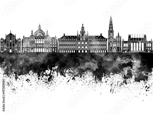 Fototapeta premium Antwerp skyline in black watercolor