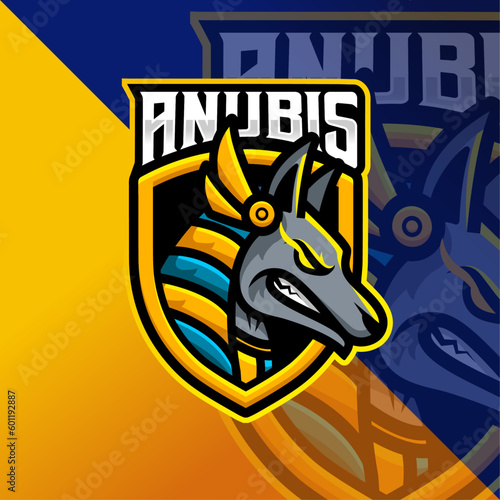 © aldonat, Fototapeta premium Anubis in Shield mascot esports logo design vector with modern character cartoon illustration concept style for badge, emblem and tshirt printing. Esports logo for sport, gamer, channel, livestreamer