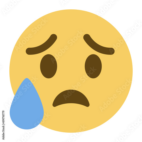 Fototapeta premium Anxious emoji with sweat. Concerned emoticon sweat dripping down