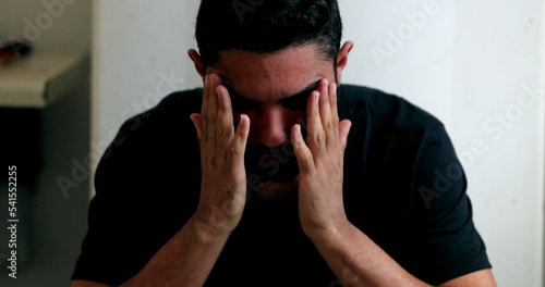 Fototapeta premium Anxious hispanic man feeling worry and PREOCCUPATION