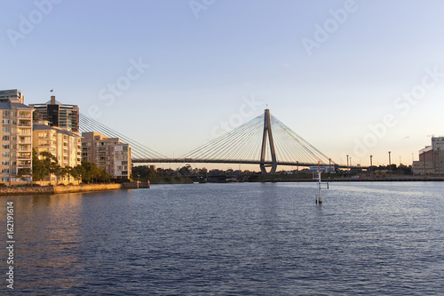Obraz premium Anzac Bridge at sunset in Sydney Australia seen from Pyrmont