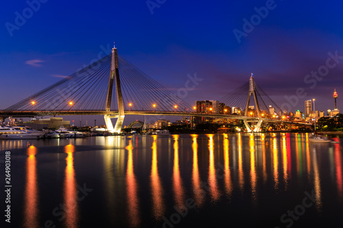Obraz premium Anzac Bridge by night, Sydney, Australia