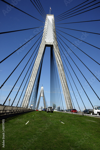 © DavidEwing, Naklejka premium Anzac Bridge in Sydney Covered in Grass