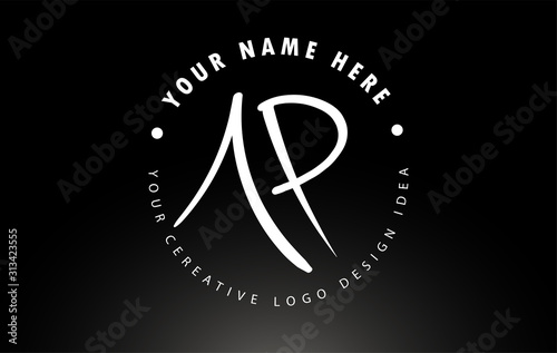 Obraz premium AP Handwritten Letters Logo Design with Circular Letter Pattern. Creative Handwritten Signature Logo Icon