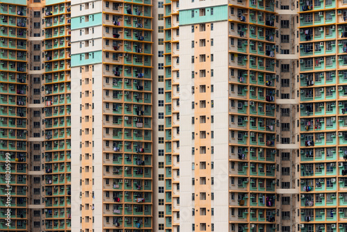 © leungchopan, Naklejka premium Apartment building facade exterior wall