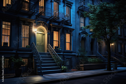 © Kitta Studio, Fototapeta premium Apartment buildings at night in New York City
