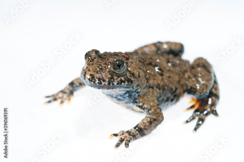 © Federico, Fototapeta premium Apennine yellow-bellied toad (Bombina pachypus) on white background, Liguria, Italy.