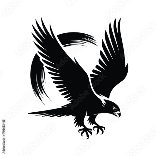 © MdRafiul, Obraz premium Apex predator emblem featuring a majestic black eagle swooping down from above