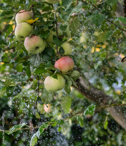 © Tobias, Obraz premium Apfel bei Regen am baum
