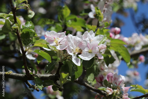 © Wilfried Bischoff, Obraz premium Apfelbaumblüte mit einer Biene